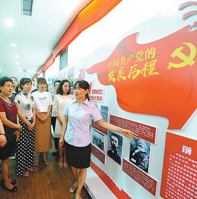 河南省漯河市源汇区纪委监委组织纪检监察干部到八一路社区党史主题教育馆参观学习。 尤亚辉摄(人民视觉) |