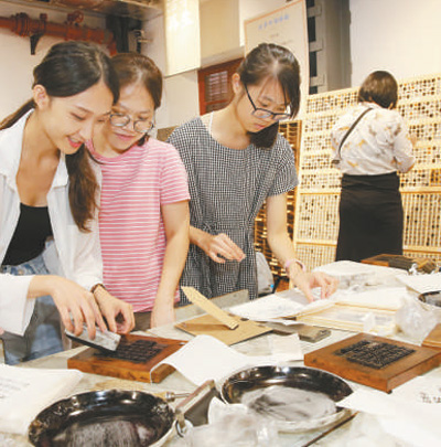 台湾大学生在江苏省南通市唐闸古镇体验活字印刷。 许丛军摄(人民视觉) |