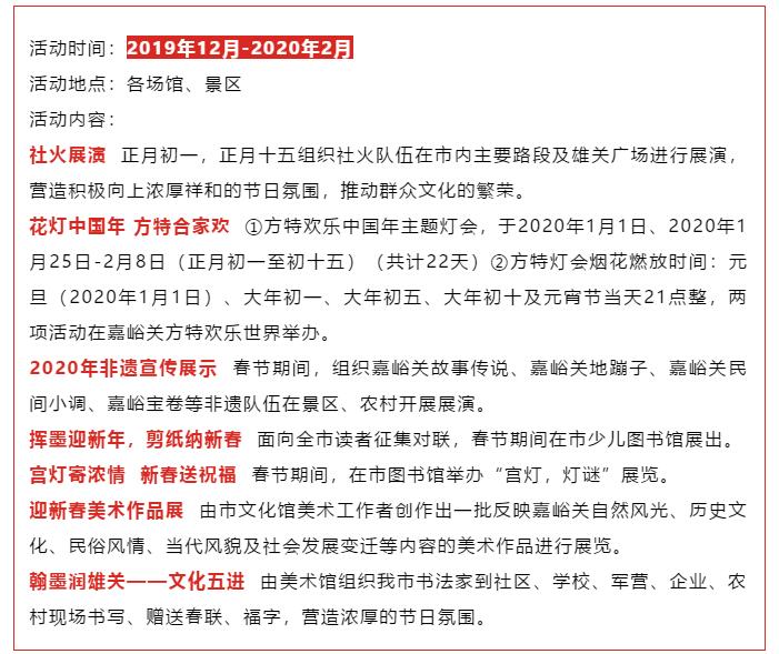 抢先看!2020春节期间嘉峪关社火、灯展、烟花表演时间、地点、优惠政策全在这啦!