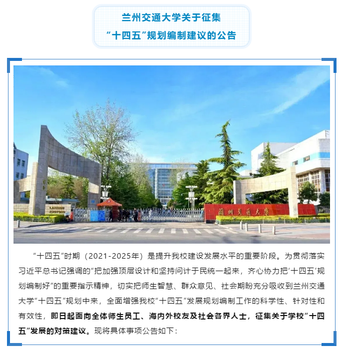 征集|兰州交大“十四五”规划编制,您的建议很重要!