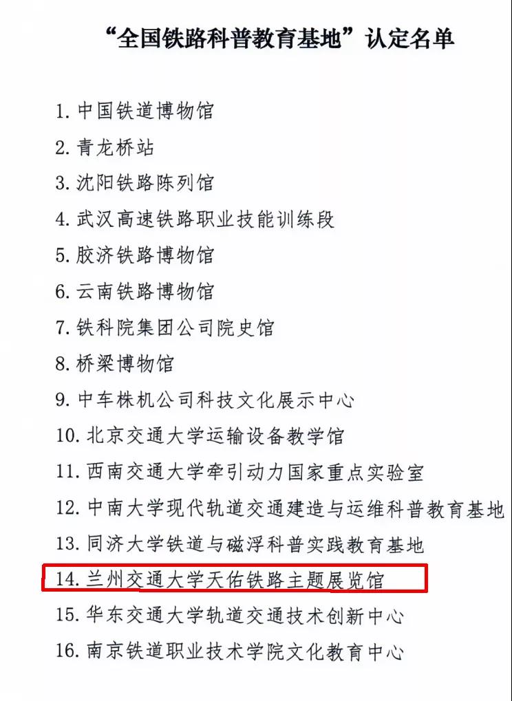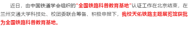 祝贺!兰州交通大学天佑铁路主题展览馆被授予“全国铁路科普教育基地”