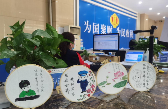 两当县税务局税务干部以环保实用的团扇为宣传载体,将税收宣传月及“陇税雷锋”活动具象化,设计制作彩绘、刺绣两种版本,用优美的线条彰显新时代磅礴“税”力量。团扇正面展现税收宣传月标语,背面则附带税收政策解读,加之以“税务蓝”为主基调的色彩,这些元素共同赋予团扇浓浓“税务风”。