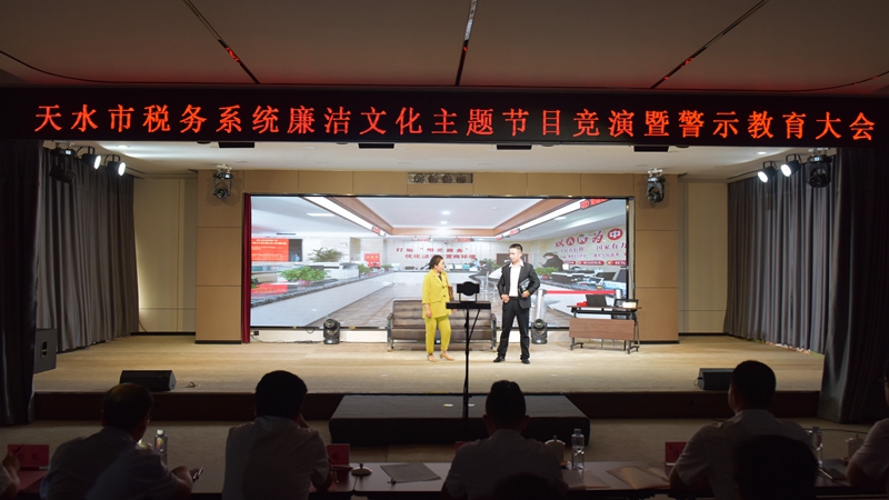 6月12日,天水市税务系统“对党忠诚守初心、陇税清风筑廉心”廉洁文化主题节目竞演顺利举办。本次主题节目竞演由天水市纪委监委、市委宣传部、市直机关工委、团市委、市妇联和天水市税务局联办,秦州区税务局协办,各联办单位有关领导出席活动现场。9个竞演节目由市税务局机关和各县区税务局选送, 竞演活动通过视频形式直播到各个县(区)局,取得了极好的警示教育效果,得到了参会领导的充分肯定和一致好评。