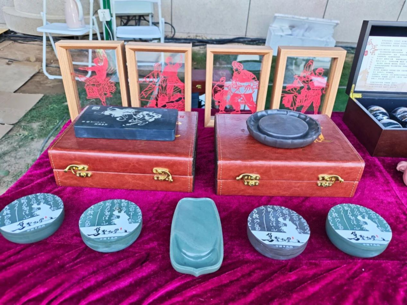 除剪纸外,其他非遗作品同样备受青睐。彩绘泥塑《十二生肖》造型生动可爱,色彩鲜艳明快,充满童趣;蛋雕《大地之子》以细腻的雕刻手法还原了“大地之子”的标志性形象,展现出高超的工艺水平;洮砚则以其温润的质地、精美的纹饰,彰显出深厚的文化底蕴。现场,非遗传承人热情地为观众讲解各类作品的制作工艺、历史背景与文化内涵,观众积极提问、交流,深入了解瓜州非遗文化,进一步拉近了传统技艺与现代生活的距离。