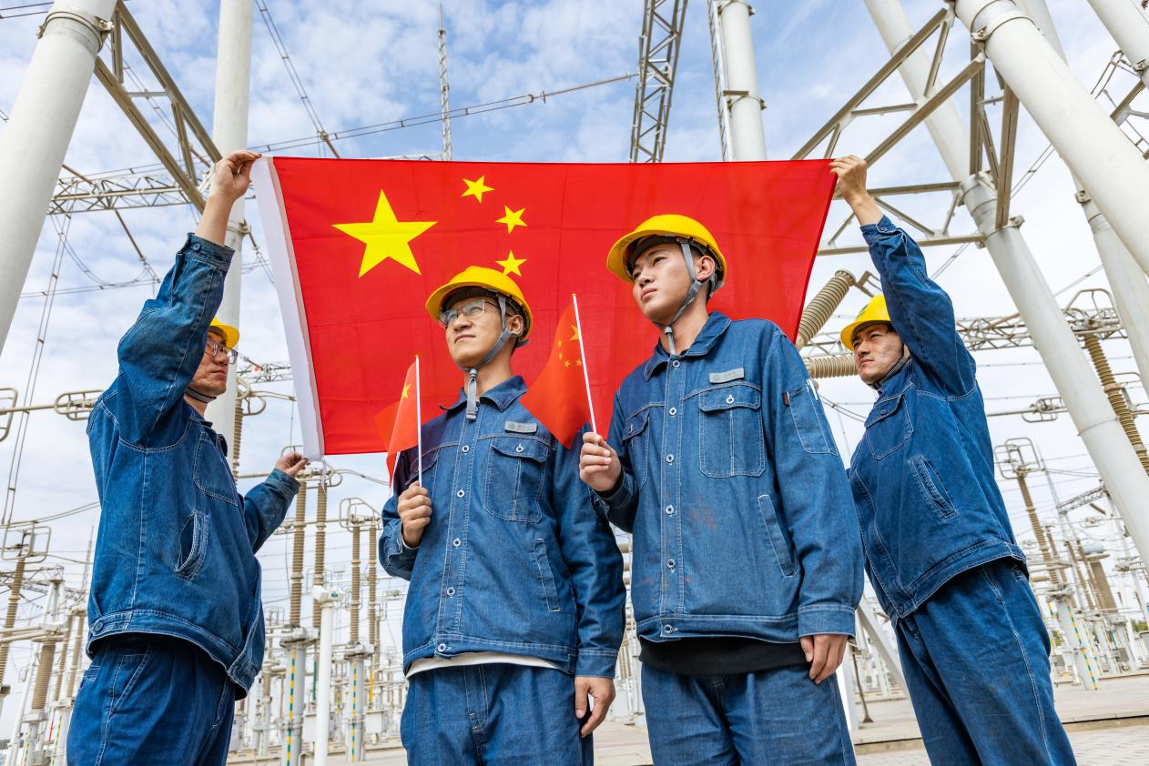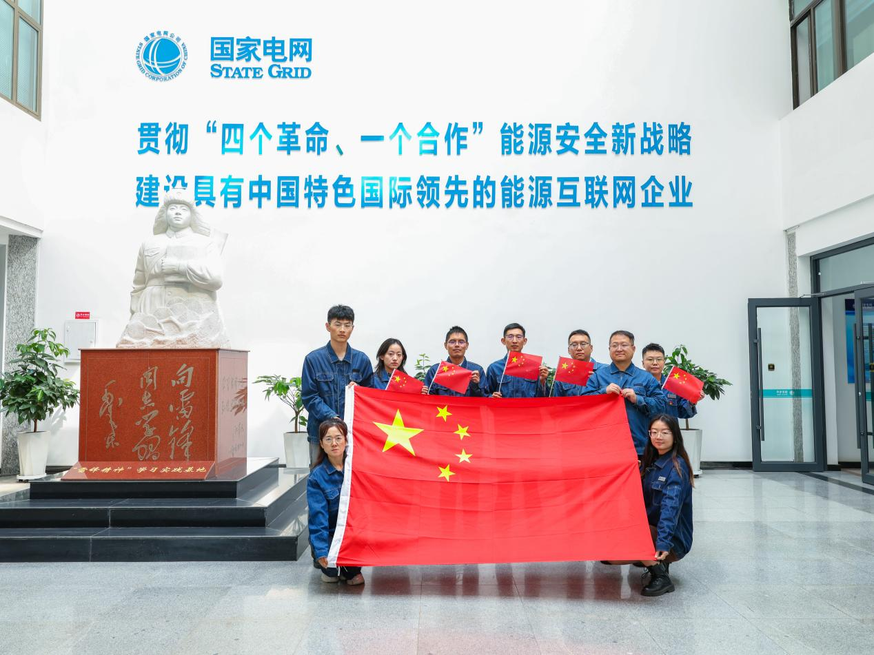 国网甘肃电科院数字化集群实验室技术人员与国旗同框 祝福伟大祖国繁荣昌盛 人民幸福安康 赵中鑫 摄