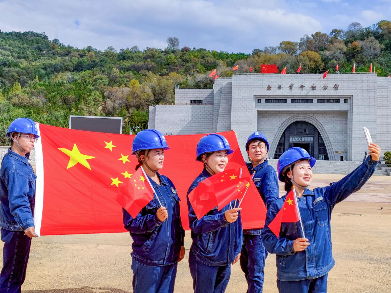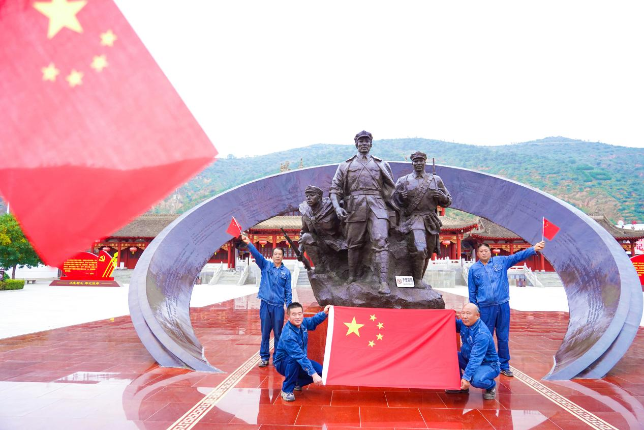 国网静宁县供电公司员工在界石铺红军长征纪念馆与国旗同框 用行动护航地方发展 王娟 摄