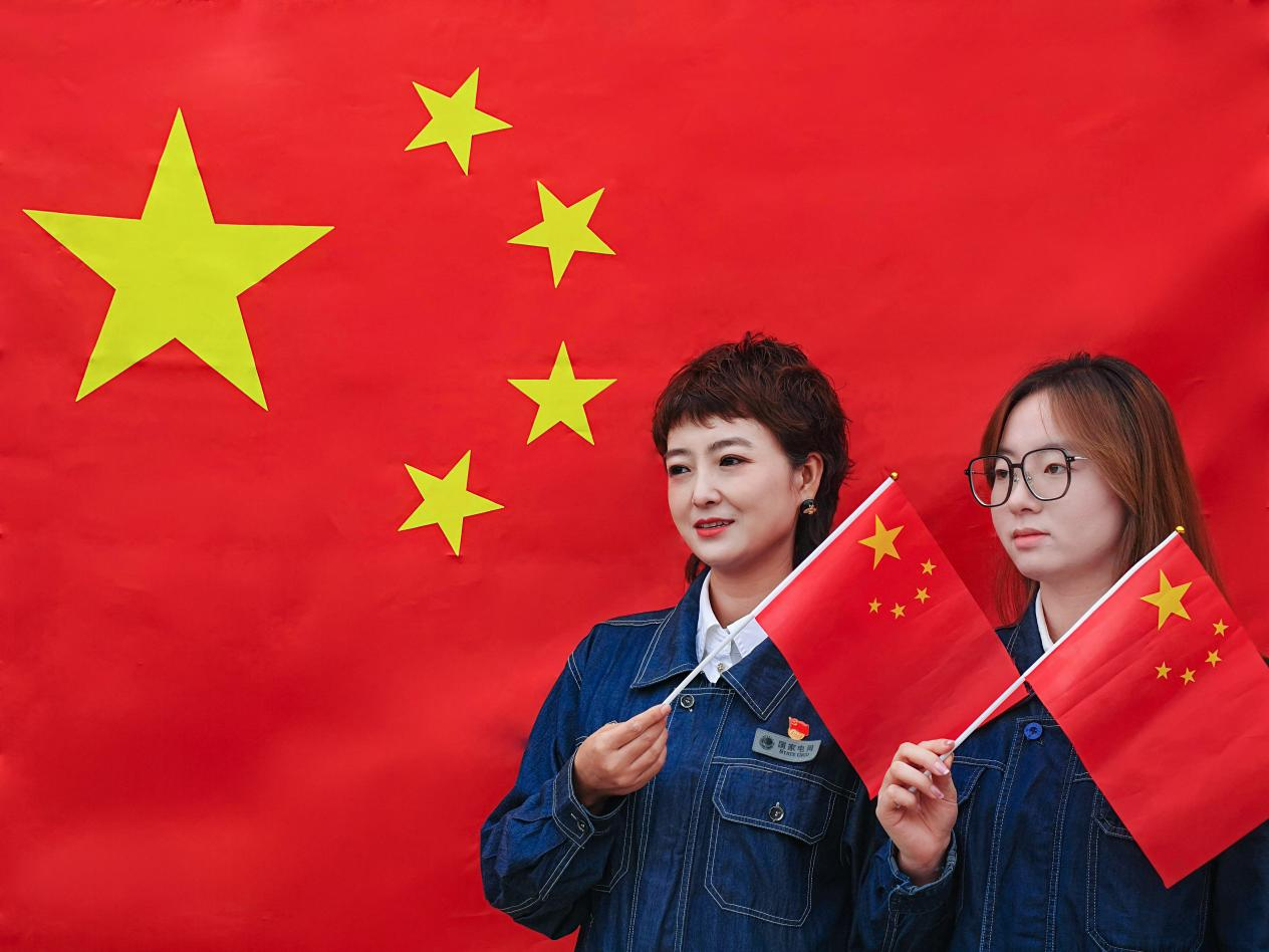 国网兰州新区供电公司员工与国旗同框 祝福祖国繁荣昌盛 于洋 董金娜 摄