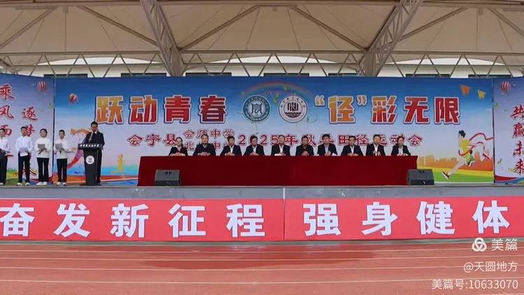 金秋贺华诞,盛会展新姿。为全面贯彻党的教育方针,落实立德树人根本任务,推动教育高质量发展,践行“五育并举”理念,促进学生全面而有个性地发展,9月29日,会宁县会师中学与北城中学共同体联盟校以“跃动青春,‘径’彩无限”为主题的2025年秋季田径运动会,在北城中学体育场盛大启幕。两校师生齐聚赛场,共同见证了一场活力澎湃、育人内涵丰富的青春盛会。此次活动不仅是学校体育教育成果的集中展示,更是推动学生过一种完整而幸福的教育生活的重要实践。