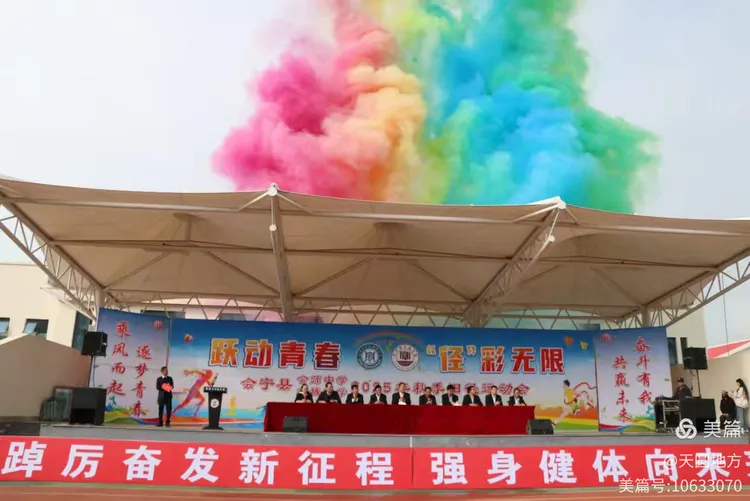 随着裁判员代表和运动员代表庄严宣誓,在全场师生的热切期待中,徐守宾校长郑重宣布:“会师中学和北城中学2025年秋季运动会正式开幕!”霎时间,彩球飞扬、烟花绚烂,掌声与欢呼声响彻云霄,运动激情被彻底点燃,将开幕盛典推向高潮。