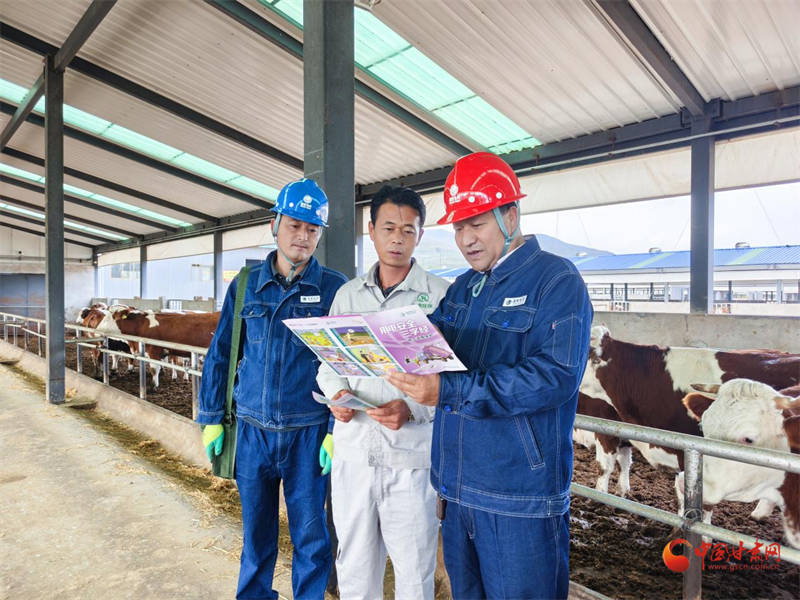 国网临夏积石山县供电公司员工在大河家镇陈家村牛羊良种繁育中心为其工作人员讲解安全用电相关知识,助力“双节”时间产业经济发展。丁瑞红 摄