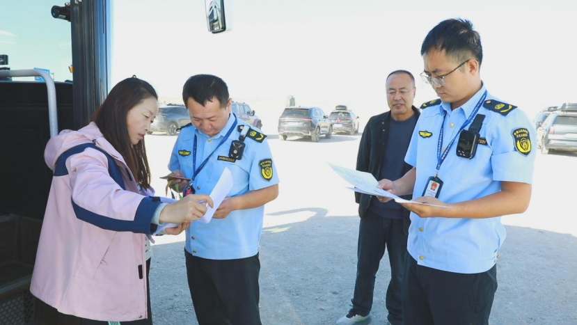 瓜州县文体广电和旅游局文化市场综合行政执法队聚焦旅游服务全链条监管提档升级,深入辖区旅行社查阅业务档案,核查旅游合同是否存在霸王条款、行程与宣传是否一致等问题。同时,在旅游景区及游客集散地随机检查导游持证上岗、按行程讲解服务等情况,全方位规范旅游服务行为。