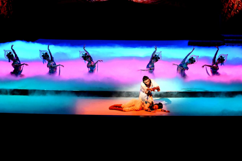 《大梦敦煌》以敦煌艺术宝库的千百年创造历史为背景,以青年画师莫高与大将军之女月牙的感情历程为线索,演绎了一段可歌可泣的爱情故事,展现了绚丽多彩的敦煌文化,颂扬了敦煌艺术的创造者,成为推广敦煌文化走向世界的重要窗口。(张晓亮 文/图)