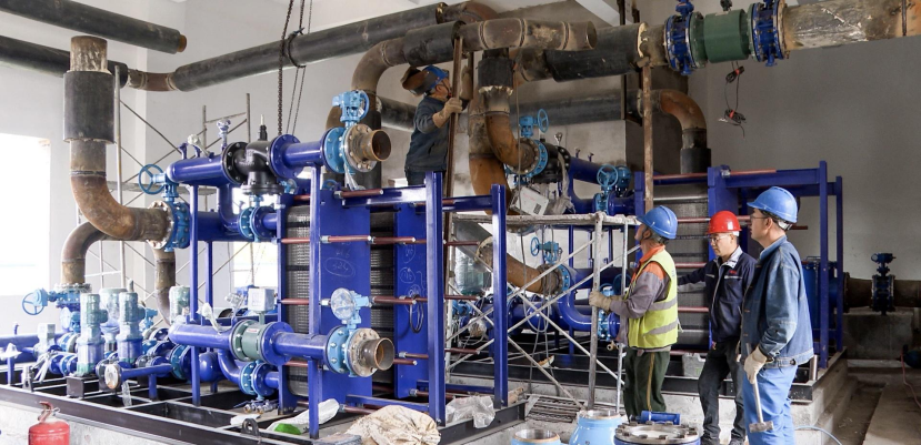 冬季供热涉及千家万户,事关百姓冷暖。平川区委、区政府始终把群众的“取暖大事”放在心上、抓在手上,通过修建热力站、提升改造供热管网,切实提升全区供热保障能力,让民生福祉更有温度、更接地气。当前,供热能力提升改造工程项目已完成96%。走进北二区换热站项目施工现场,焊花飞溅,火光四射,几位焊工头戴专业面罩,正在认真地焊接钢管,他们身后是已安装好的部分循环管道和换热机组,一派火热的建设景象。平川区北二区换热站项目建设单位施工负责人何进军介绍:“新建北二区换热站,主要是解决原北二区换热站供暖末端,导致北二区整体的供暖效果不佳的问题。本次新建换热站框架结构150㎡,安装换热机组三组,其中1兆瓦的换热机组两台,6兆瓦的换热机组一台,投用后将极大地提升北二区整体供暖效果。”平川区北二区换热站项目施工方负责人袁强介绍:“6兆瓦机组带动社区,1兆瓦机组带动建筑高低区,完工时间是9月30日,电器安装在10月3日以前结束。”