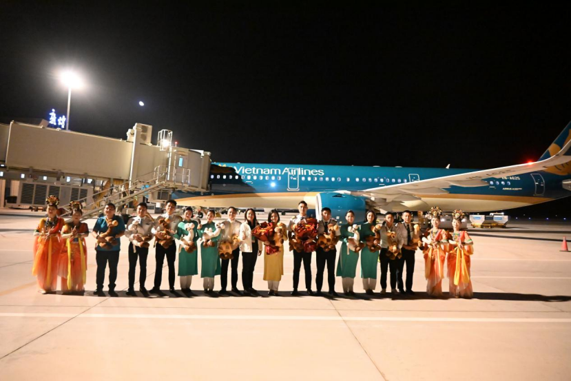 10月11日晚,由越南航空公司执飞的越南河内至中国敦煌国际旅游包机首航航班顺利降落敦煌莫高国际机场,标志着越南河内至中国敦煌国际旅游包机往返航线正式开通。