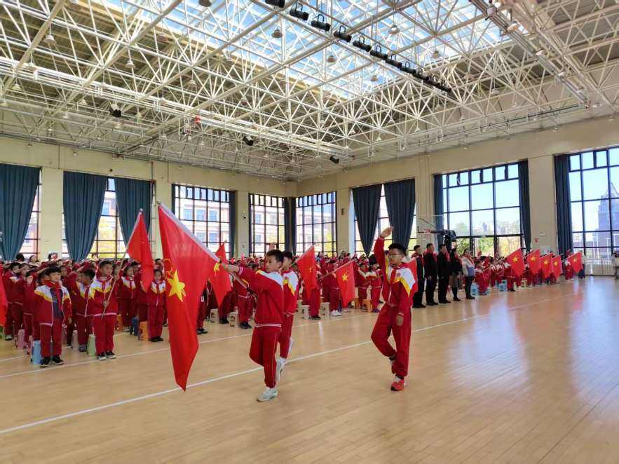 活动在庄严的出旗仪式中拉开帷幕。旗手们迈着坚定有力的步伐,护卫着鲜艳的中国少年先锋队队旗入场,全体少先队员肃立注目、队礼规范,挺拔的身姿与专注的神情,生动展现了新时代少先队员昂扬向上的精神风貌。