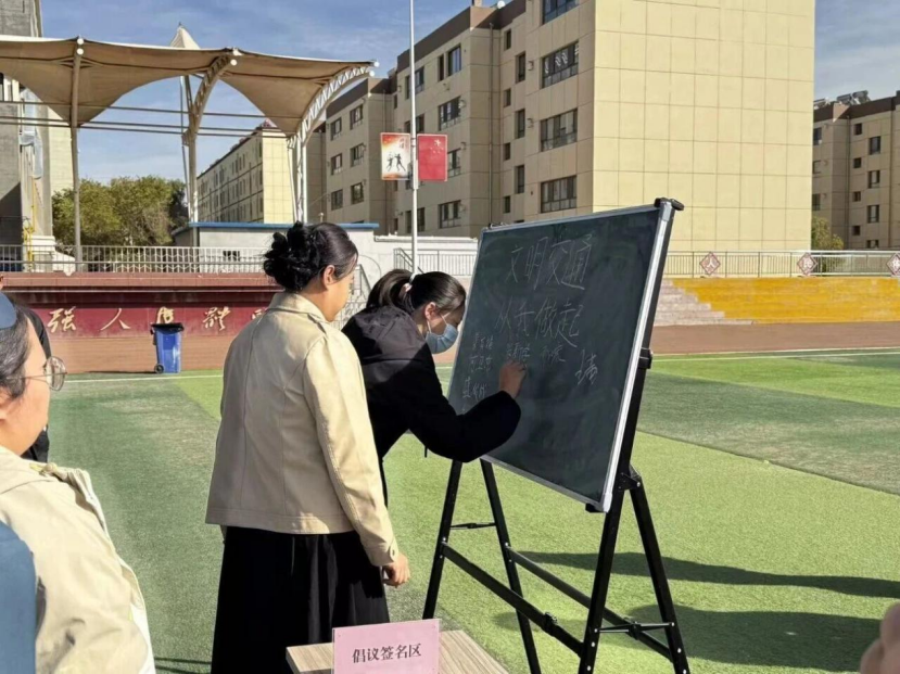 活动临近尾声,一场“文明交通从我做起”倡议签名仪式庄重举行。工会工作人员组织在场职工群众有序在签名横幅上签下自己的名字,郑重承诺“自觉遵守交通法规、主动抵制闯红灯、不礼让斑马线等交通陋习,争做文明出行倡导者”。签下的不仅是名字,更是对文明出行的坚定承诺,进一步强化了职工群众的责任意识与自律意识。