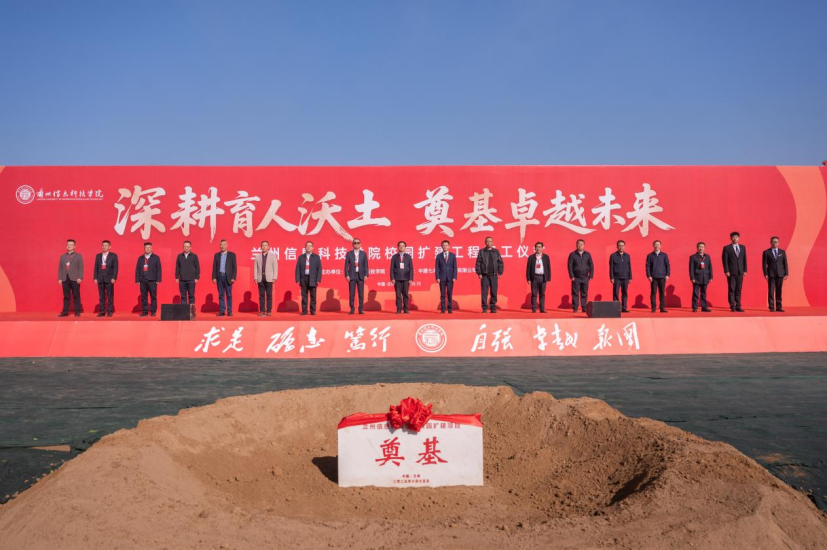 在全体与会人员的热烈期盼中,学校主要领导与嘉宾共同挥动金锹,为校园扩建工程培土奠基。这一刻,金色的泥土承载着希望与梦想,正式开启了兰州信息科技学院建设发展的新篇章。