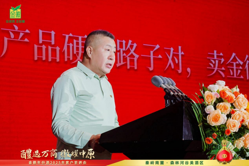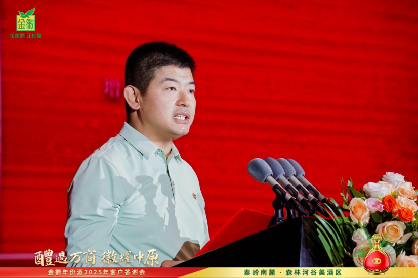 金徽酒股份有限公司副总裁王宁、年份产品事业部总经理王天荣、年份产品事业部副总经理巴义权、张汉卿等出席活动。王宁在致辞中强调:多年来,我们始终坚定品牌升级与营销创新的发展路径,与合作伙伴‘信心一致、方向一致、动作一致’。要让品牌建设,成为销售的助推器。金徽酒持续打造“醴遇金徽1580中宴”“秦岭樱花节”“高端康养游”等特色IP,让品牌活动直接带动终端销售;通过赞助伏羲大典、兰洽会、文博会、药博会等高端赞助活动,提升品牌势能;创新开展“金徽+体育”系列赛事,将品牌影响力转化为实实在在的门店客流量。要用营销创新,拓宽合作伙伴的盈利空间。我们始终从各位伙伴的盈利需求出发,精准定位消费场景,系统开展“开瓶动销激励”“宴席大冲关”“BC联动”等营销活动。我们坚信:合作伙伴的盈利增长,就是我们品牌发展的根本动力。要增投入、抓动销,提升渠道活力。通过宴席反向激励、“金徽赠手机,致敬奋进者”等活动方式,持续加大市场投入力度,聚焦终端动销,强化渠道服务支持。从陈列升级到推广赋能,从培训体系到数字化工具应用,全方位提升渠道运营效率,让每一分投入都转化为终端活力。要联利益、稳价格,确保合作伙伴的长期收益。我们坚持“控量保价、稳定预期”的市场策略,通过配额管理与价格联动机制,保障渠道各环节合理利润,让每一位伙伴都能分享品牌向上的红利。要强秩序、严管控守护合作伙伴的利益底线。我们运用数字化工具强化市场巡查与违约惩戒机制,有效地维护价格体系稳定。我们深知,守护好合作伙伴的利润空间,就是守护我们共同的事业根基。