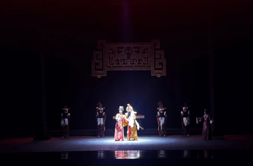 演出现场,观众们在浑厚的编钟声中开启了时空穿越之旅,舞台上红衣少女款款而行,拉开故事序幕;象征着纯洁坚毅的女贞子,映衬出阿柿以性命祈求“永罢刀兵”的决绝,为剧情画上凄艳句号。剧中主演潘钰以细腻表演与动人唱腔,将角色内心的痛苦与坚定展现得淋漓尽致。传统京剧的“唱念做打”与凉州历史的厚重底蕴完美交融,让观众不仅领略到传统艺术的程式之美,还能感受历史叙事的情感张力。