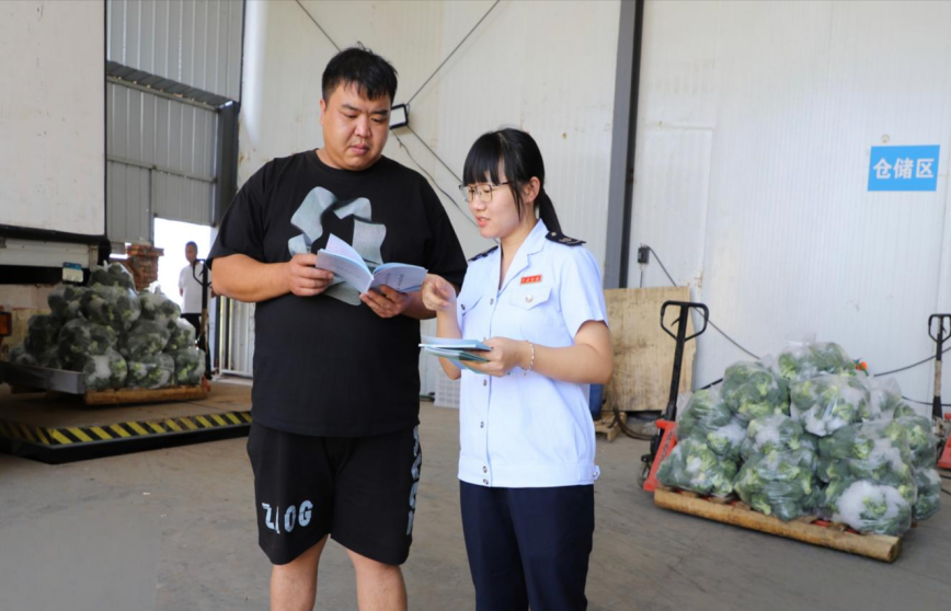 税务干部在高原夏菜物流基地为纳税人讲解税收优惠政策