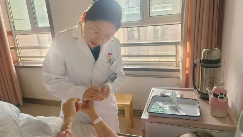 最让刘艳霞难忘的是去年深秋的那位孕吐患者。孕8周的李女士因妊娠剧吐体重骤降,无法进食,滴水难进的她被家人搀扶着入院时,眼神里满是绝望。刘艳霞整体辨证论治,在常规补液基础上,为她贴上了调和脾胃的穴位贴,辅以微型揿针持续刺激。当天就有了效果,孕妇可以正常吃饭,身体也恢复了很多。