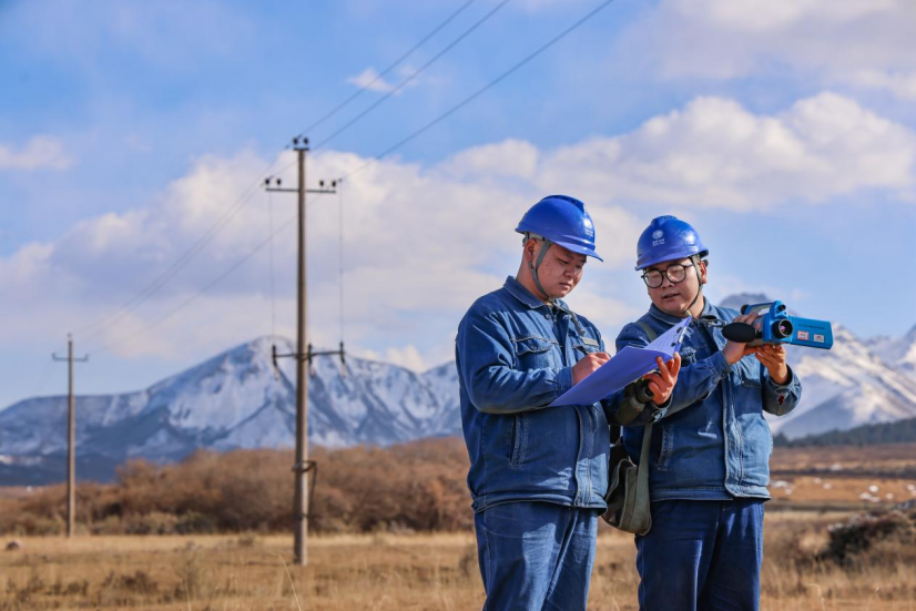 天苍苍,野茫茫,风吹草低见牛羊。深秋的张掖山丹军马场,3900米的海拔上寒意已浸透草场,而电锅炉嗡嗡的鸣叫声中,带着暖意的蒸汽正顺着管网奔涌向千家万户。11月3日,国网甘肃电力(张掖电骆驼)连心桥共产党员服务队队员刘龙和祝乾,正沿着10千伏113马营线路一路巡视,有了他们负重前行,群众就能温暖越冬。