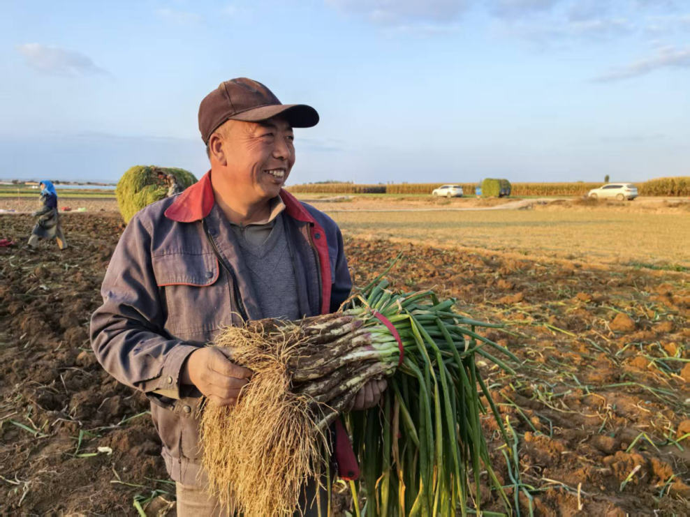 “我在这儿拣葱、打包发货,一个月3000块钱,好得很。”乌兰镇东关村村民高培红满脸欣慰。