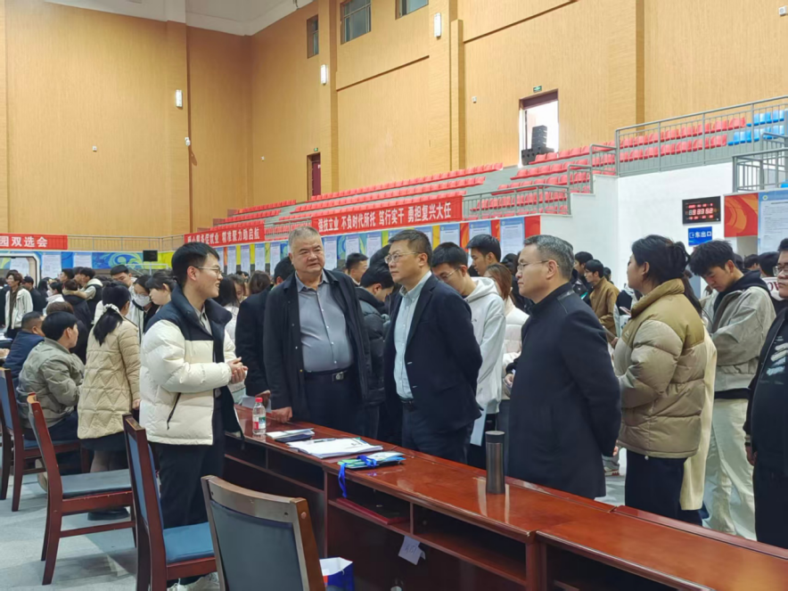 招聘会期间,校长李海军及有关校领导深入招聘会,进一步沟通对接用人单位,对参加招聘活动的广大同学提出建议,勉励广大同学面对就业要立足专业、拓宽视野,早日将自己所学知识变成实现中国梦的青春力量。