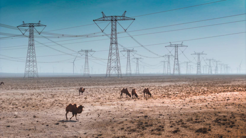 坚强电网将张掖市临泽县北部滩新能源产业园区内发出的清洁电能安全高效送出。韩甜甜 摄