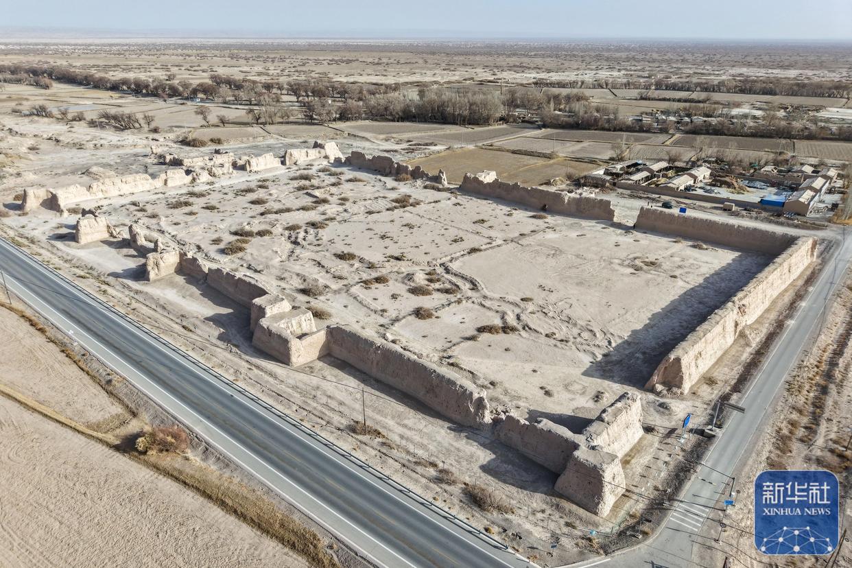 ↑ 这是11月18日在甘肃省酒泉市瓜州县锁阳城镇常乐村拍摄的破城子遗址(无人机照片)。新华社记者 张智敏 摄