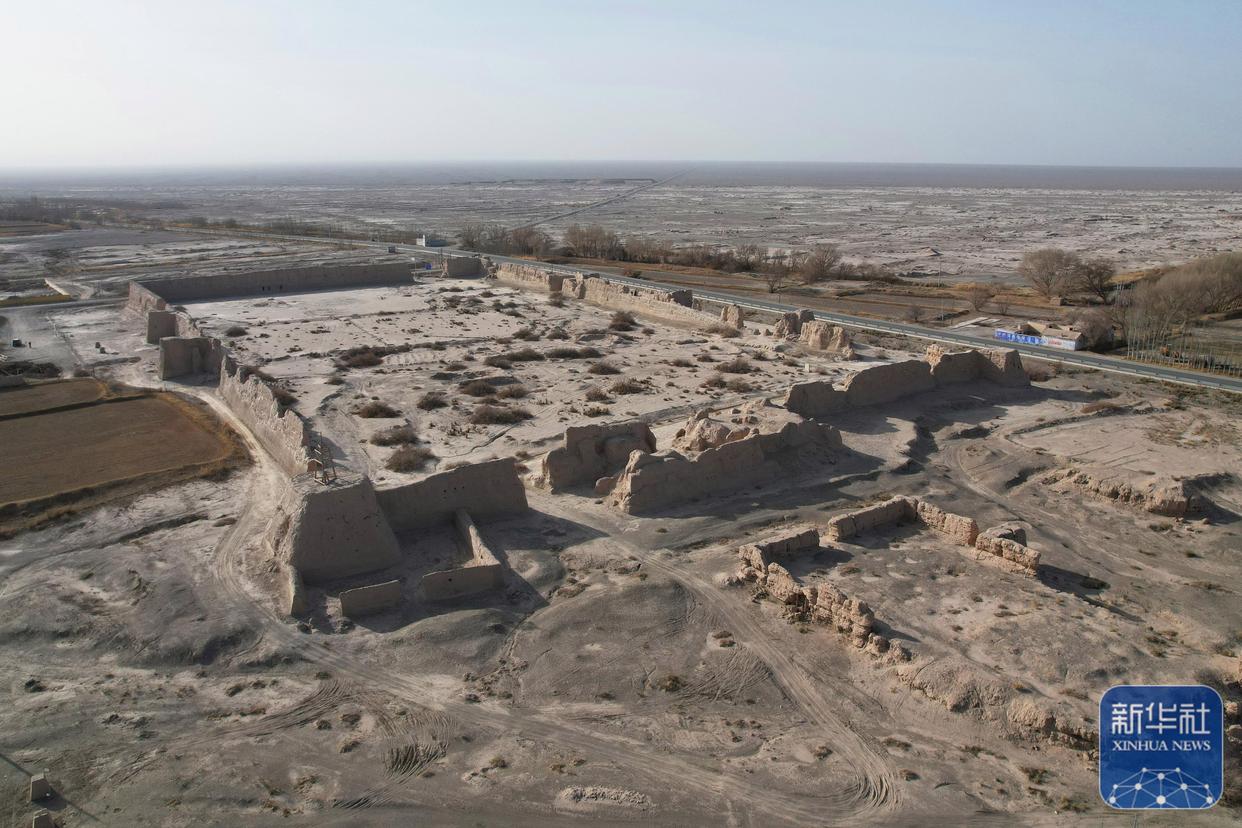 ↑ 11月18日在甘肃省瓜州县锁阳城镇常乐村拍摄的破城子遗址全景(无人机照片)。新华社记者 郎兵兵 摄