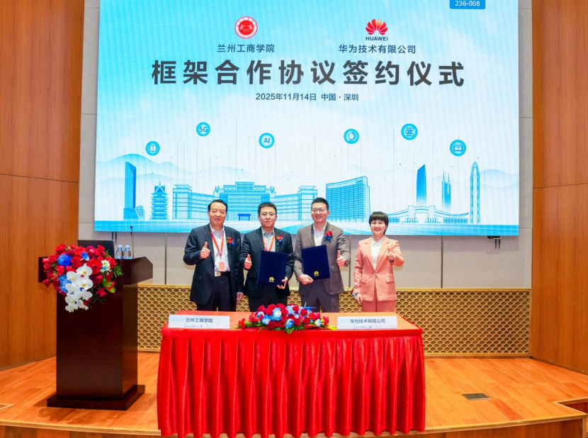 11月14日,兰州工商学院与华为技术有限公司(以下简称“华为”)在深圳华为总部签署框架合作协议。根据协议,双方将深入整合各自优势资源,在探索兰州工商学院ICT人才培养、产教融合、现代产业学院建设、数智化转型等领域建立全面合作关系,开启双方深度合作新里程。