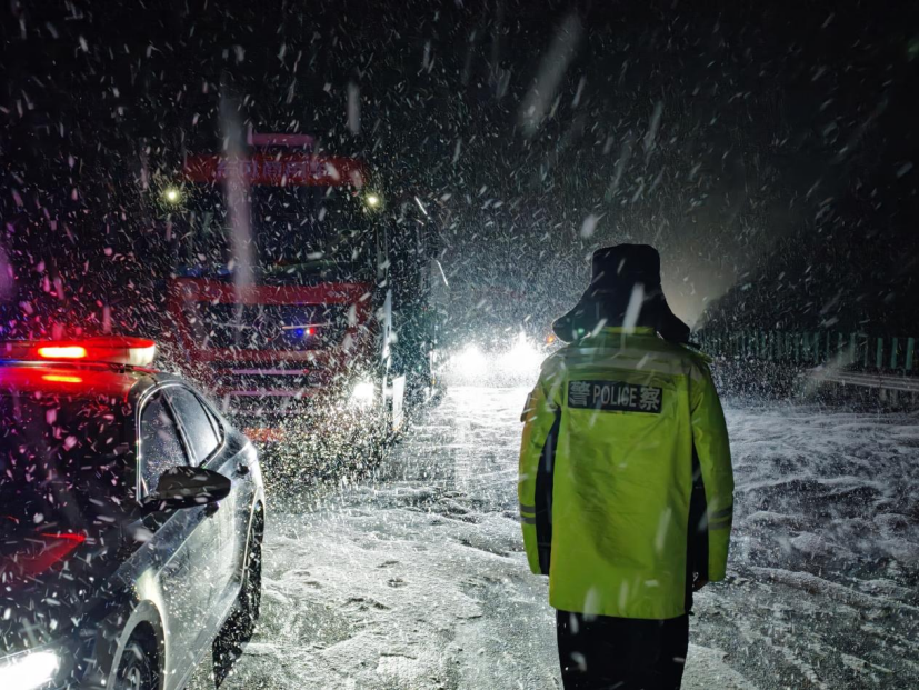 中国甘肃网11月25日讯(西北角·中国甘肃网记者 张振国 通讯员 王增偲 文/图)近日,受较强冷空气影响,武威地区迎来今冬首场降雪,高速公路出现路面湿滑现象,交通安全风险随之加大。为积极应对降雪天气,全力保障群众出行安全,武威公安坚持“人民至上、生命至上”理念,闻“雪”而动、全警投入,第一时间启动恶劣天气应急预案,强化多部门勤务联动,全面开展交通疏导、融雪除冰、服务群众及宣传提示等工作。全体民辅警坚守岗位、奋战一线,全力做好冰雪天气道路保通保畅,坚决防范因恶劣天气引发的道路交通事故,切实守护群众平安出行。