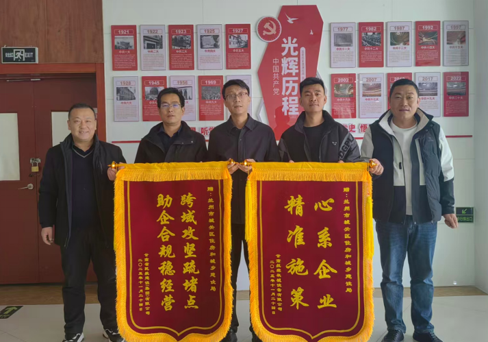11月25日,辖区企业将两面写有“跨域攻坚疏堵点 助企合规稳经营”“心系企业 精准施策”的锦旗送至兰州市城关区住建局,鲜红的锦旗不仅是企业对城关区优化营商环境工作的高度认可,更是城关区住建人以实干担当赋能企业高质量发展的生动见证。