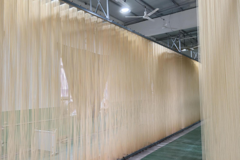 走进古浪县清盛源农业开发有限公司的生产车间,阵阵麦香扑鼻而来。晾晒架上,洁白半透的挂面如银丝垂落,拉扯间尽显十足弹性;包装线上,一袋袋挂面经扫码打标后,按“一箱八袋”标准整齐装箱,这些承载着古浪风土气息的特色产品,即将奔赴全国各地的餐桌。