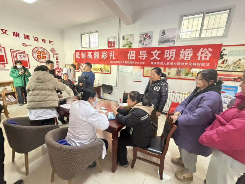 为了抵制高额彩礼、人情攀比、大操大办等婚俗陋习,12月3日下午,城关区新时代文明实践中心办公室联合雁南街道新时代文明实践所在大雁滩村社区开展“抵制高额彩礼 倡导文明婚俗”移风易俗主题宣讲会,40名辖区居民齐聚一堂,在直观体验与贴心服务中,深刻感受文明婚俗带来的新风尚。此次活动也拉开了全区移风易俗专题宣传月的序幕。