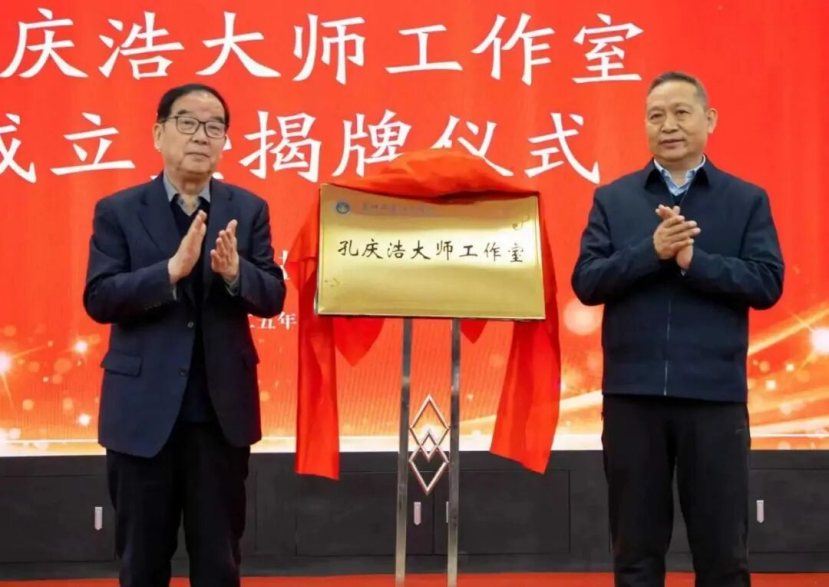 毛玉铎为“孔庆浩大师工作室”揭牌,并为孔庆浩颁发聘书。