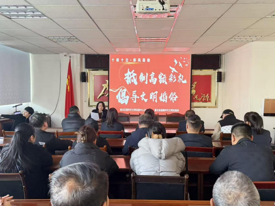 为进一步深化移风易俗工作成果,引导居民自觉抵制陈规陋习并积极践行文明行为,12月24日下午,兰州市城关区新时代文明实践中心办公室联合雁北街道,在宋家滩村新时代文明实践站举办了以“抵制高额彩礼,倡导文明婚俗”为主题的宣讲活动。40余名辖区居民汇聚一堂,沉浸式体验文明新风的浸润。