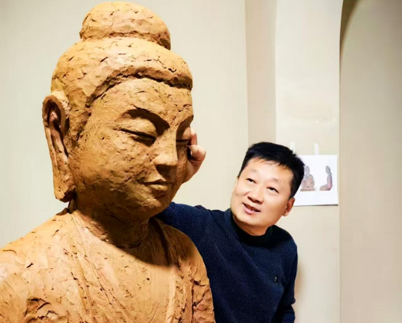 艺术馆内陈列的7尊唐代塑像复制品,由武威籍雕塑家王宏采用传统手工工艺复原完成。游客可贴近细观,塑像肌肤质感细腻、服饰纹理飘逸,面部表情庄严生动,再现了唐代造像的典型神韵。王宏长期从事文物仿制工作,在复原中严格遵循古法,通过塑形、敷彩、做旧等多道工序,使作品高度还原历史原貌。