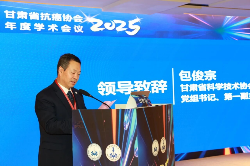 甘肃省科学技术协会党组书记、第一副主席包俊宗对会议召开表示热烈祝贺。他充分肯定省抗癌协会在凝聚专家力量、推动学术进步、服务公众健康方面的重要作用,并结合新时期社会团体发展要求提出四点希望:一是完善组织架构,确保内部运转有序、职责明晰;二是提升服务能力,紧贴行业需求与群众关切,提供务实高效的专业支持;三是加强资源整合与联动,主动搭建跨领域合作桥梁,推动协同创新;四是严格规范运营管理,依法合规开展活动,持续提升社会公信力与形象。他鼓励协会以本次学术盛会为契机,团结带领广大肿瘤科技工作者,为甘肃肿瘤防治事业高质量发展和健康甘肃建设再立新功。