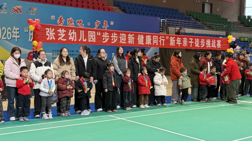 瓜州县张芝幼儿园举办“步步迎新·健康同行”庆元旦亲子活动。家长和孩子们沿着公园步道前行,齐心协力完成徒步挑战,并一起参与“捉泥鳅”、套圈等趣味游戏,处处都是欢声笑语,尽显亲子间的温情与节日的喜悦。