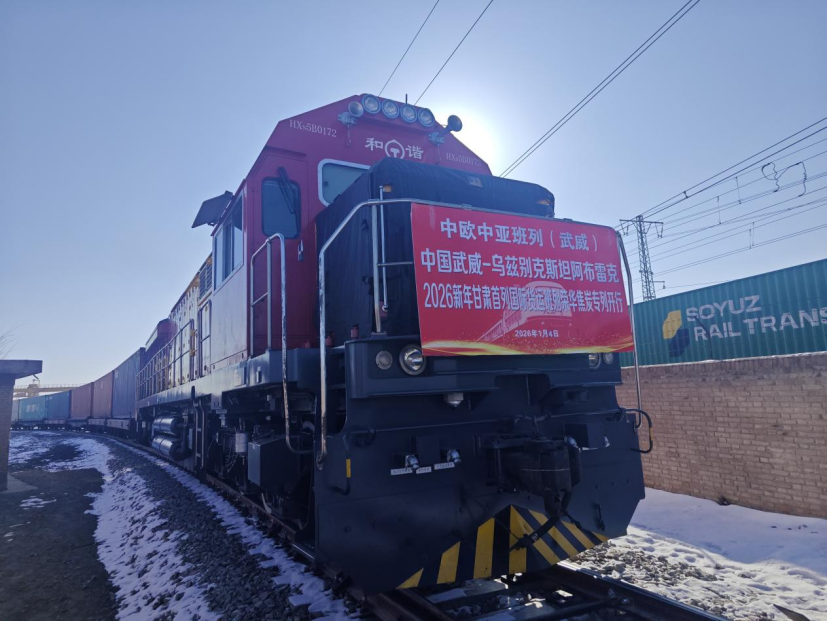 中国甘肃网1月4日讯(西北角·中国甘肃网记者 张振国)2026年新年伊始,甘肃省国际物流通道建设迎来标志性新进展。1月4日11:08分,伴随着响亮的汽笛声,一列满载47车、总重1300吨优质铸造焦的“甘肃武威—乌兹别克斯坦阿布雷克”国际货运班列75112/1次,从武威南站缓缓驶出。这是甘肃省2026年发出的首列国际班列,实现了新年国际物流业务的“开门红”。