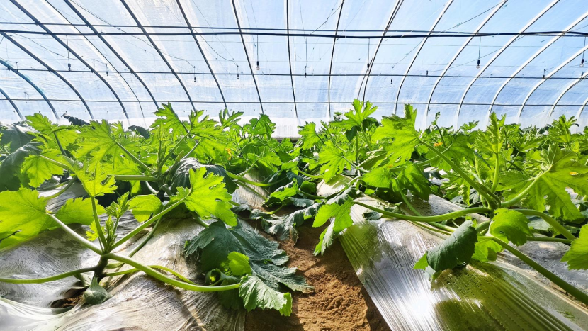 在泗水镇的温室大棚内,连片的西葫芦藤蔓爬满田垄,鹅黄色的花朵悠然绽放,宛若一只只精巧的小喇叭,仿佛正为即将到来的丰收奏响序曲。