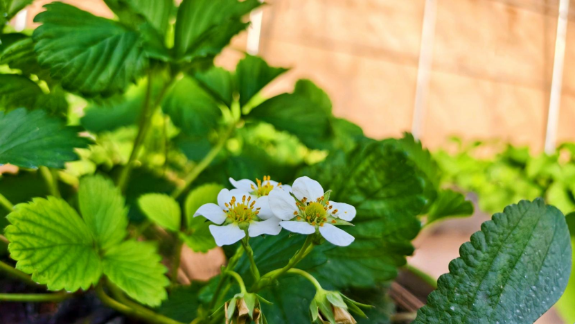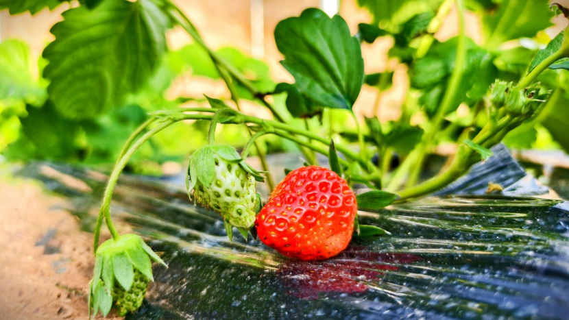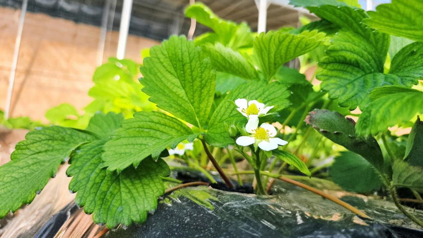 步入土门镇宝塔寺村的草莓大棚,翠绿藤蔓间点缀着星星点点的白花,鲜红饱满的草莓半藏半露于叶下。红果、绿叶、白花彼此映衬,很是惹人。