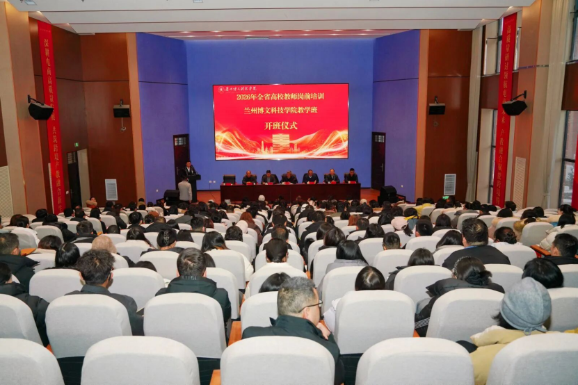 1月4日上午,2026年全省高校教师岗前培训兰州博文科技学院教学班在兰州新区校区图书馆报告厅开班。西北师范大学继续教育学院党委书记陈科、法学院院长何俊毅、继续教育学院副院长李玉泉,兰州博文科技学院校长陈正武等领导出席,全体参训教师参加。