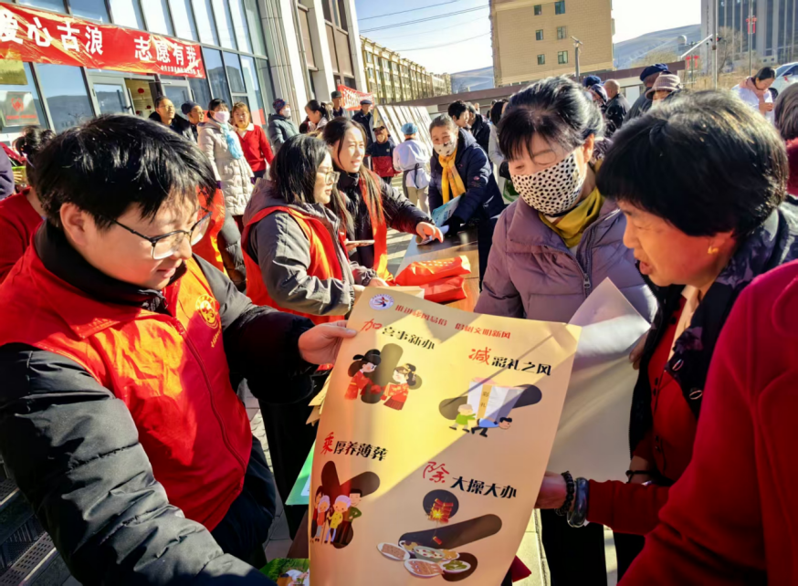 抓宣传强氛围,扩大品牌影响。发布武威市“深化移风易俗 倡树文明新风”“移风易俗 文明祭扫”倡议书,积极践行“一碗烩菜办丧事”的实践经验,杜绝大操大办与封建迷信,让节俭治丧更具文明温度。充分利用新时代文明实践中心(所、站)阵地作用,通过媒体宣传、村级广播、宣传栏、微信群等多种渠道,广泛传播“厚养薄葬”理念,为老百姓算清“经济账”“人情账”“风气账”,引导群众认清陋习危害,理解支持简办新风。2025年,各县区新时代文明实践中心(所、站)开展殡葬移风易俗宣传宣讲活动2000余场次,发放“移风易俗明白卡”“倡树殡葬新风 共建文明家庭”宣传海报等宣传资料13万余份,在新媒体平台刊播殡葬移风易俗类稿件200余条,广泛提高群众对“一碗烩菜办丧事”的知晓率,赢得群众的价值认同,受到群众的大力支持。民勤县通过组织召开移风易俗专题座谈会、“殡葬移风易俗”专题宣讲活动等教育引导城乡群众破除厚葬薄养、大操大办等陈规陋习和不良风气。古浪县、天祝县“一碗烩菜办丧事”经验做法在县域内较大范围铺开。
