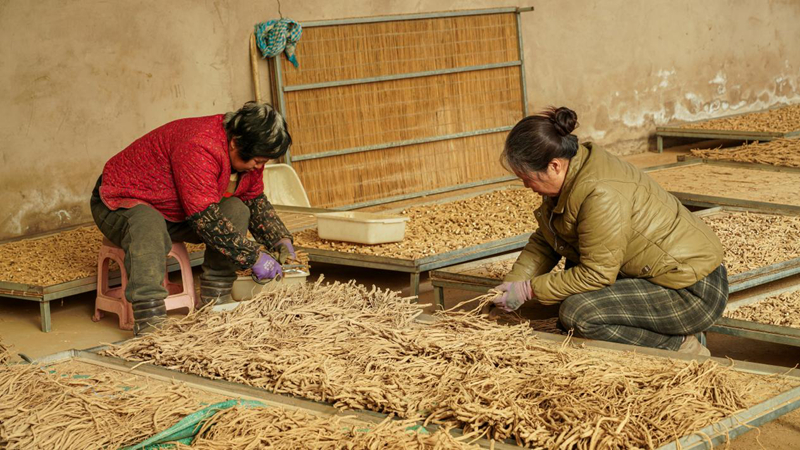 2022年,总投资368万元的北大坪村中药材产业延链补链项目基地建成投用,成为改变产业格局的关键一环。这座集清洗、贮藏、保鲜、晾晒、烘干、交易、农残检测、切片加工于一体的现代化基地,像一个“产业中枢”,辐射周边6万亩以上的中药材种植区,每年带动1万吨以上中药材流通,7000户以上农民直接受益。“鲜党参一斤卖8块,烘干切片后能卖到25块,附加值翻了三倍。”王秀英一边干活一边跟我聊天,言语间满是满足——在家门口就能实现稳定增收,这是最实在的幸福感。