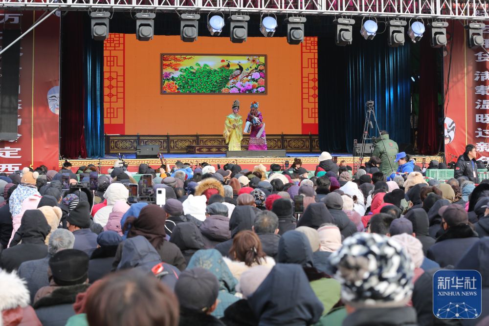 ▲群众在年货大集上观看秦腔非遗演出(1月19日摄)。新华社发(王克贤 摄)