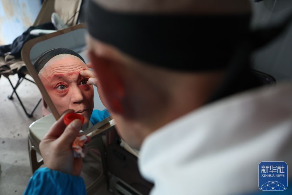 ▲秦腔演员在年货大集上为演出做准备(1月19日摄)。新华社记者 陈斌 摄