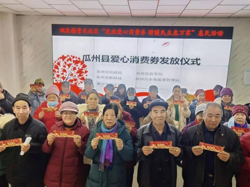 有序发放爱心消费券,激活民生保障“多元效能”。为兼顾困难群众生活需求与地方消费活力,瓜州县面向2025年12月27日前登记在册的城乡低保对象、特困人员、孤儿和事实无人抚养儿童,精准发放“爱心消费券”。其中,城乡低保、特困人员及低保边缘对象按每户500元标准发放,孤儿及事实无人抚养儿童按每人300元标准发放,共计投入补助资金273.03万元,惠及困难群众5473户(人),在保障群众基本生活的同时,有效释放消费潜能,为地方经济发展注入民生动力。
